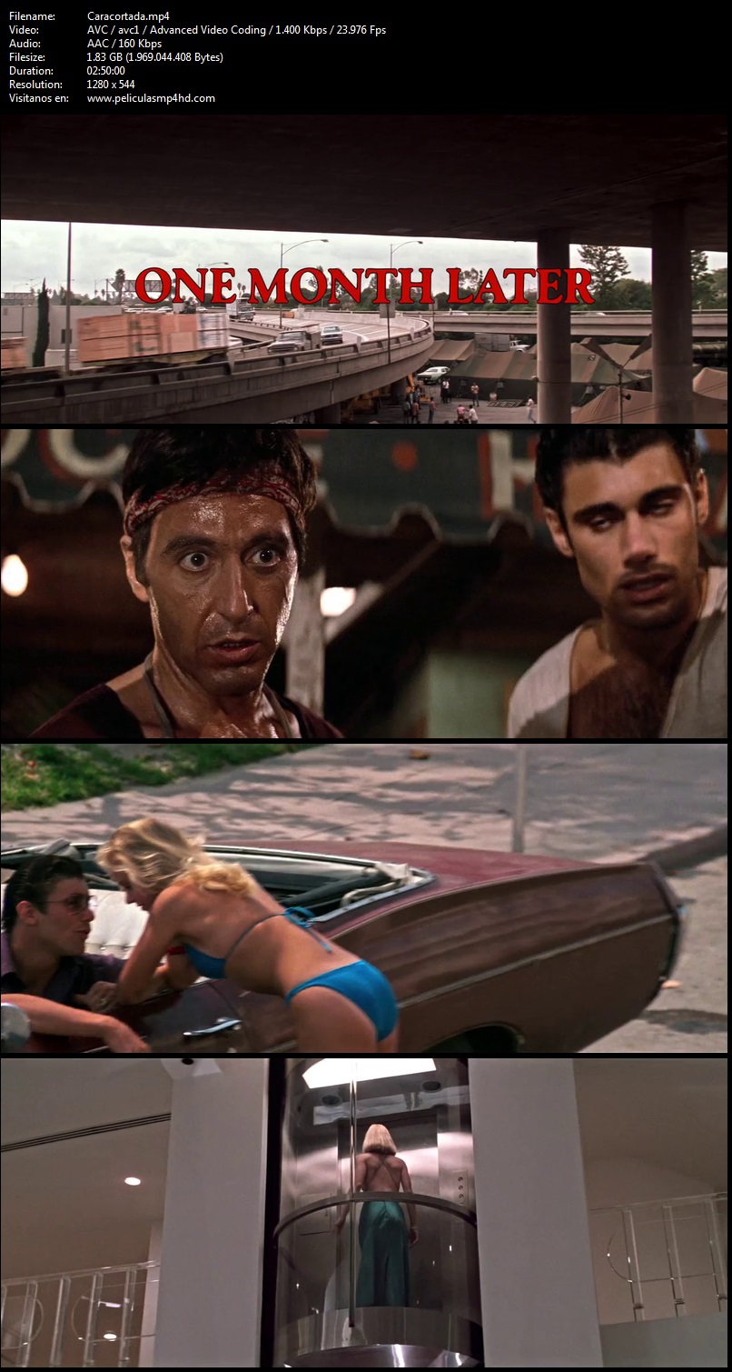 Tony Montana es un emigrante cubano frĂo e implacable que se instala en Miami con el propĂłsito de convertirse en un gĂĄngster importante, y poder asĂ ganar dinero y posiciĂłn. Con la colaboraciĂłn de su amigo Manny Rivera inicia una fulgurante carrera delictiva, como traficante de cocaĂna, con el objetivo de acceder a la cĂșpula de una organizaciĂłn de narcos.